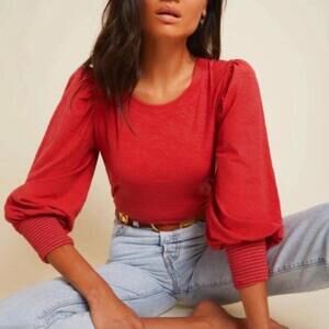 Nation LTD. Loren Peasant Tee Shirt Puff Sleeve 100% Cotton Red/Orange Womens XS