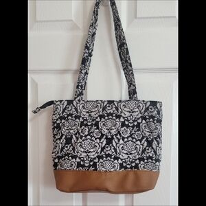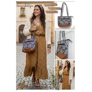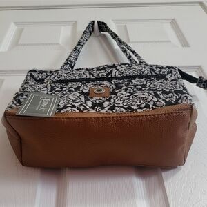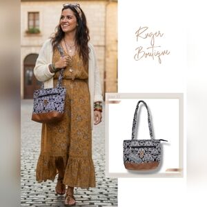🌿Stone Mountain NY Quilted Floral Tote Bag NWT Black Tan Boho Chic Shoulder Bag