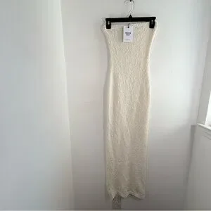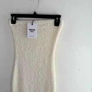 NWT Princess Polly Cream Cloud Strapless Boucle Maxi Dress