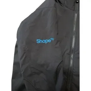 Note: This item features blue "ShapeTX" corporate branding on the right sleeve and a matching "STX" logo on the upper back shoulder.