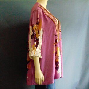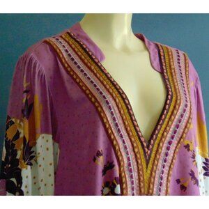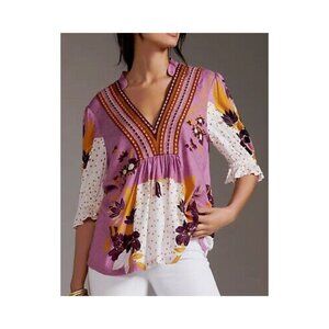 Made of lightweight viscose material, this pullover top adds a touch of whimsy with ribbon accents, while the relaxed fit ensures a comfortable and stylish look. Perfect for everyday wear, this Anthropologie blouse is machine washable and easy to care for. 3/4 inch sleeves. Comes from a smoke-free home.
