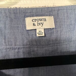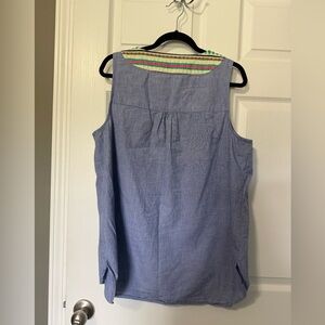 Crown & Ivy Sleeveless Blue V-Neck Embroidered Trim Top - XL