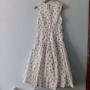 Avec Les Filles Blue Floral Smocked Waist Square Neck Midi Dress XS