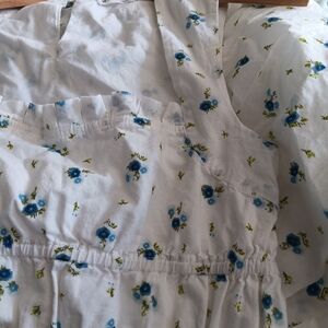 White with blue floral print