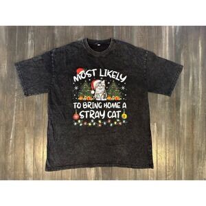 Most Likely To Bring Home A Stray Cat Christmas T-Shirt Acid Wash Black Graphic