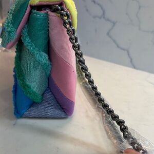 This vibrant women's bag features a playful mix of colors and a stylish design. Perfect for adding a pop of color to any outfit.