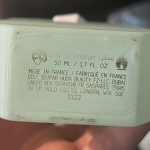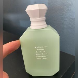 KAYALI Yum Pistachio Gelato perfume bottle. Smells delicious but I have too many perfumes in my collection. Pointing to how filled the perfume bottle is in the second picture. Bottle and perfume in good condition.