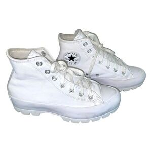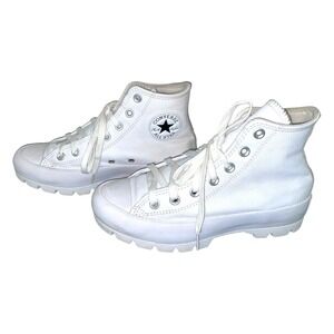 Converse Women's Sz 6.5 Chuck Taylor Lugged High White Leather Platform Sneakers