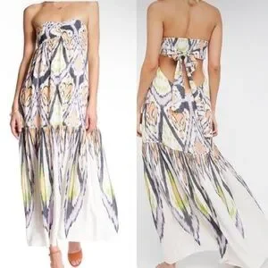 Free People Mojave Aztec Strapless Tie Smocked Open Back Maxi Dress