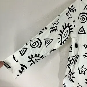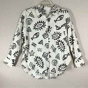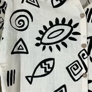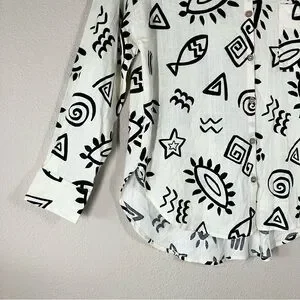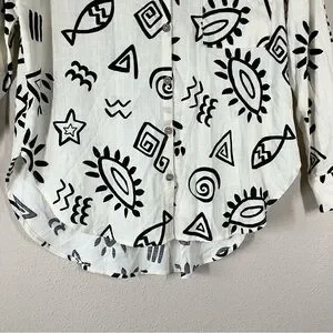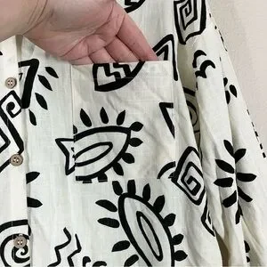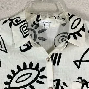 BLU PEPPER Linen Blend Button Up Shirt M Long Sleeve Boho Artsy Resort Vacation