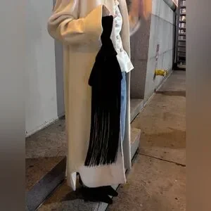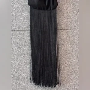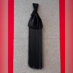 This elegant black fringe bag is perfect for adding a touch of sophistication to any outfit. Its unique design makes it a standout accessory for any occasion.
