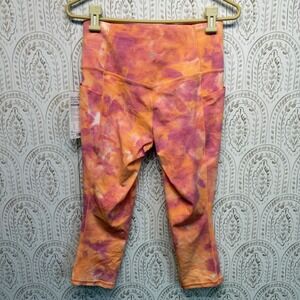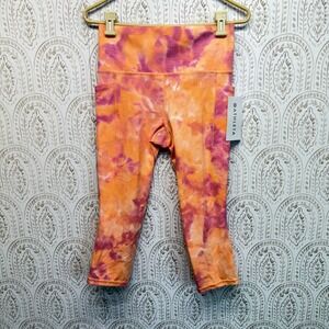 Athleta Salutation Stash Pocket II Capri Women M Orange Tie Dye Yoga Leggings
