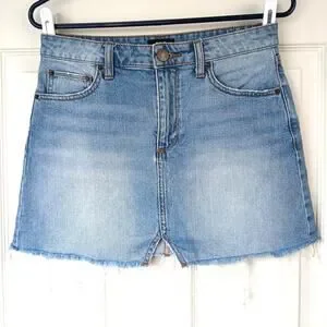 UO BDG Notched Denim Mini Skirt S-P jeans cutoffs frayed light wash notched