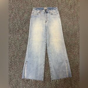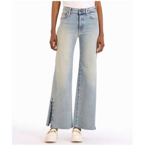 Kut from the Kloth Meg High Rise Wide Leg Jeans Size 6. Raw hem. Side slits. Light wash great preowned condition