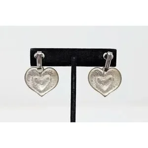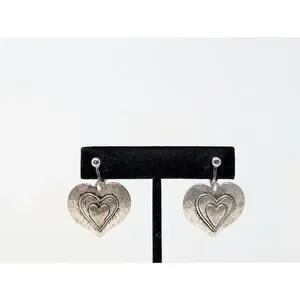 * Silver-tone layered heart shaped dangle earrings with clip on backs