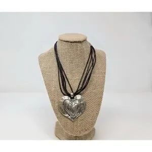 * Necklace has a black multi-strand cord with a silver-layered heart pendant and adjustable length chain
