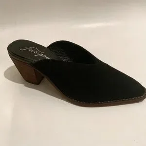 FREE PEOPLE Anya Black Suede Pointed Toe Western Chunky Heel Mules Women’s Cowboy style Boho Shoes