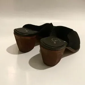 women’s black suede boho mule shoes