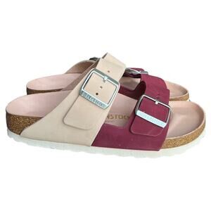 Birkenstock Two-Tone Burgundy and Beige Arizona Sandals