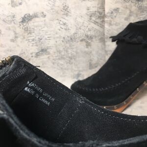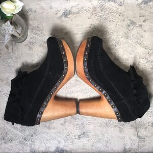 Flogg Davina Clog Platform Suede Leather Ankle Boots Bootie Wooden Chunky Heel Back Zip Cushioned Insole Moccasins