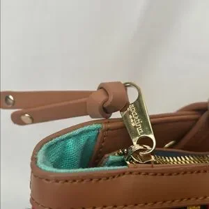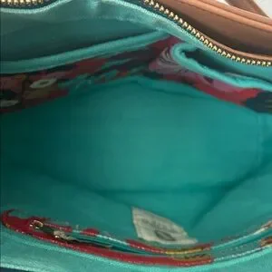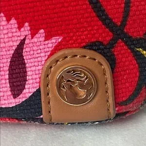 Spartina 449 Vibrant Red Floral Brown Leather Accents/Trim Tote Bag Purse 🌺🌺