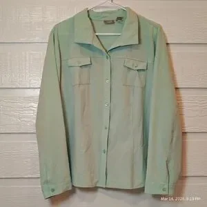 CHICOS WOMEN SZ 3 MINT GREEN BUTTON DOWN CASUAL STRETCH CAREER PERFORMANCE US XL