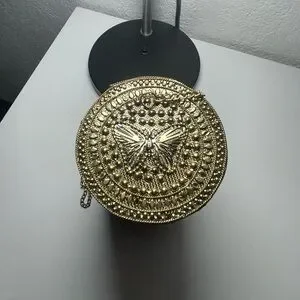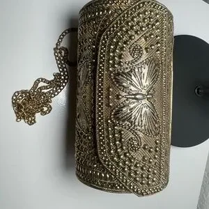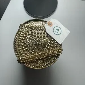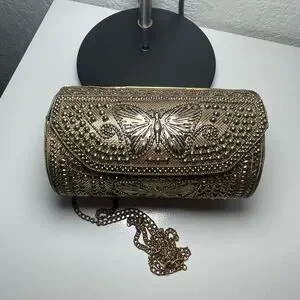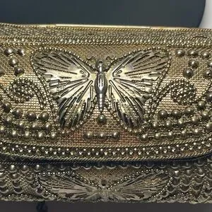 Elevate your style with this exquisite brass hammered bag, featuring a stunning butterfly and velvet like interior. Comes with a long chain making it super handy. Perfect for adding a touch of glamour to any outfit. From earthbound, made in India. Not huge but big enough for the essentials. Approx 9 X 5. NWT. Please to enjoy!