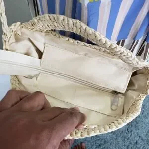 Small Beach Crossbody Rattan Straw Bag With Zipper