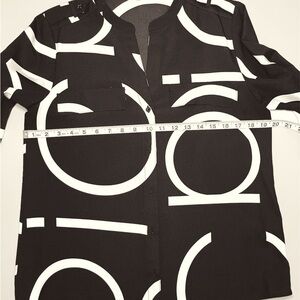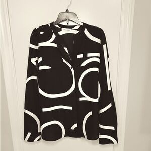 Calvin Klein Black & White long sleeve Logo Button Down Blouse Size; Small