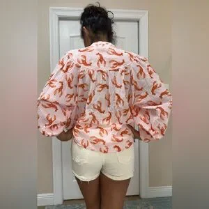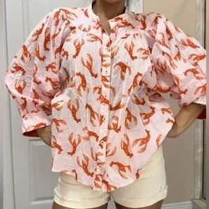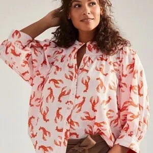 Anthropologie Whimsy Lobster Print Button Down Shirt