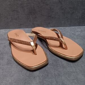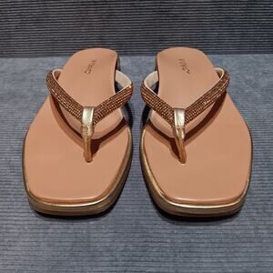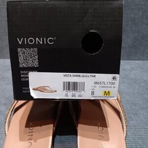VIONIC Sparkle Vista Shine Toe Post Sandals Size 8 Gold Metallic Leather