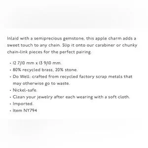 NWT MADEWELL Semiprecious Apple Charm! This Apple charm adds a sweet touch to any chain or charm bracelet! Brand new with tags! Never worn! Excellent condition! Bundle and save!