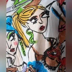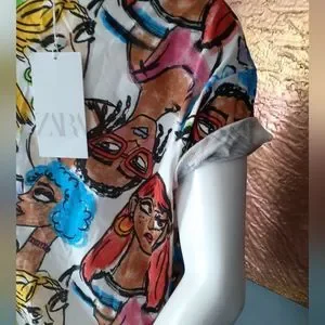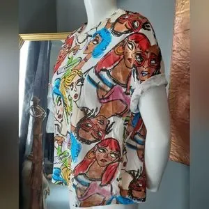 Vibrant and stylish women top featuring a colorful graphic design. Perfect for adding a pop of color to your wardrobe.