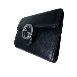 Gucci Black Leather key holder /Wallet with Silver Interlocking G