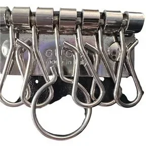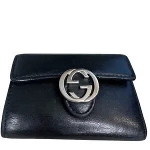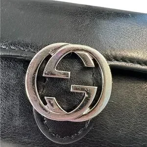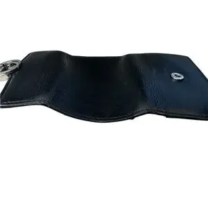 Designer compact key holder/wallet. Smooth black leather exterior. Prominent silver interlocking G hardware. Sleek and refined style. like new comes with box.