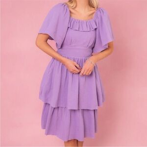 Ivy City Co. || Iris Tiered Ruffle Smocked Dress Lavender Purple XL