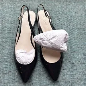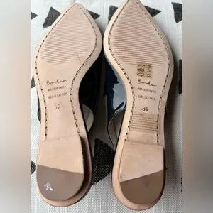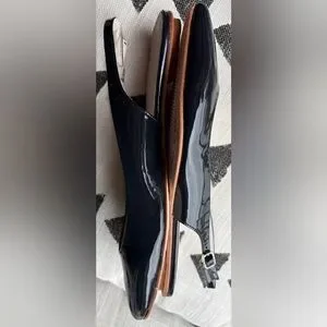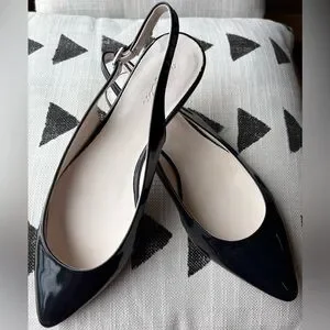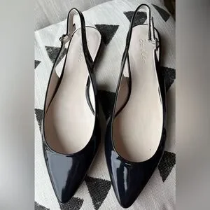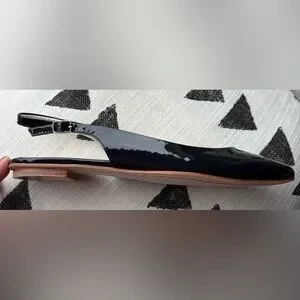 Biden NEW chic black patent leather slingback flats with adjustable buckle closure. Perfect for any occasion, these shoes offer both comfort and elegance. Euro size 39 US size 8.5.