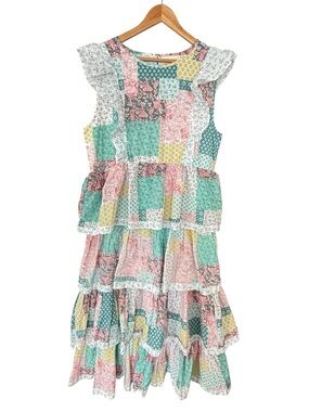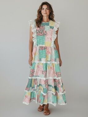 SIMPLY SOUTHERN Quilted Patchwork Tiered Maxi Dress Floral Size XL NEW