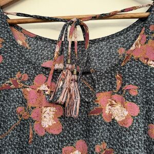 Knox Rose Floral Peasant Blouse Large Boho Tassel Tie Long Sleeve