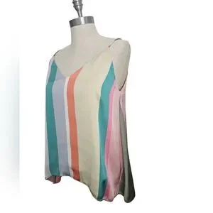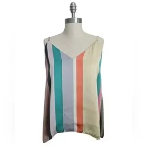 ZARA Multicolor Striped Spaghetti Strap Satin Top | SZ M