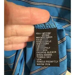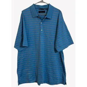 Greg Norman Polo Shirt Mens XXL Blue Pinstripe Shark Tag Golf Casual