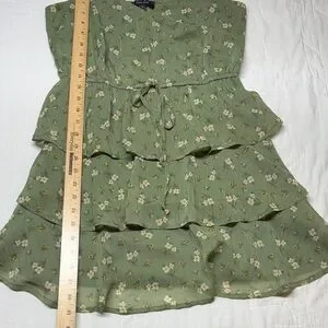 Cottagecore Sage Green Floral Tiered Ruffle Mini Babydoll Dress Coastal Cowgirl