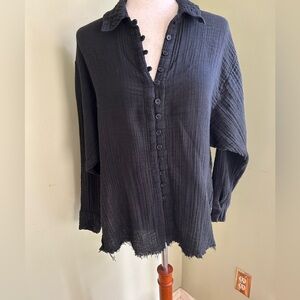 Urban Outfitters Addison Button-Front Blouse. Black size S. Raw hem, side vent.