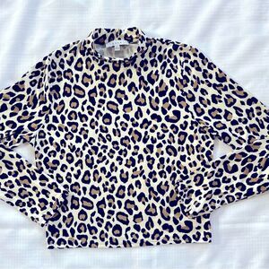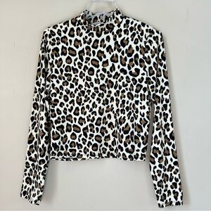 Gaze Leopard Mock Long Sleeve Buttery Soft Top Shirt Blouse Size L