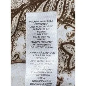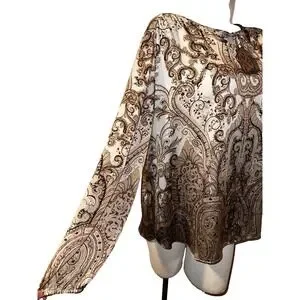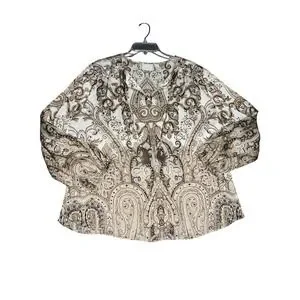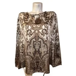 Chicos Women Brown Cream Paisley Tassel Tie Split Neck Blouse Top Size (3) XL