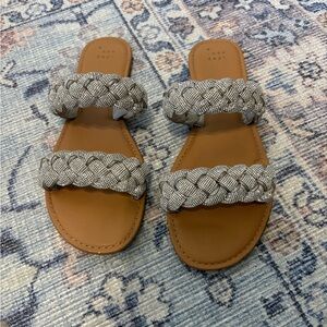 Elegant braided sandals with dual straps. Perfect for casual outings. Comfortable and stylish. Excellent condition. Pet and smoke free home.