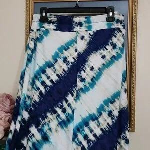 Tye Dye White Blue A-Line Maxi Skirt Beach Vacation Cruise Summer Brunch Medium