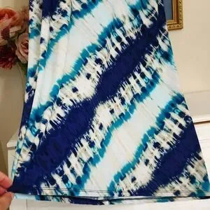 This beautiful maxi skirt from NY Collection features a captivating white and blue tie-dye pattern, perfect for casual or resort wear. The flowing A-line silhouette offers a comfortable fit, making it an ideal choice for relaxed outings. Its unique diagonal design adds a modern twist to the classic maxi style.