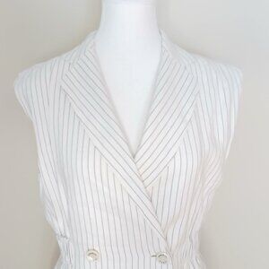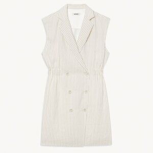 SANDRO Cosima Double Breasted Pinstriped Linen Blend Mini Dress Ecru Size 4