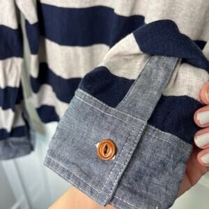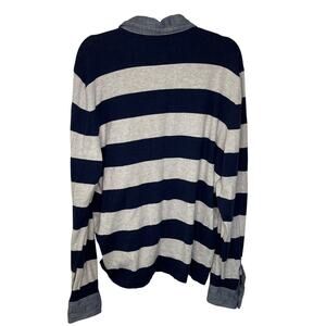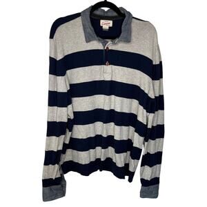Lands’ End Canvas Mens Rugby Polo Shirt XL Navy Striped Cotton Cashmere 434750